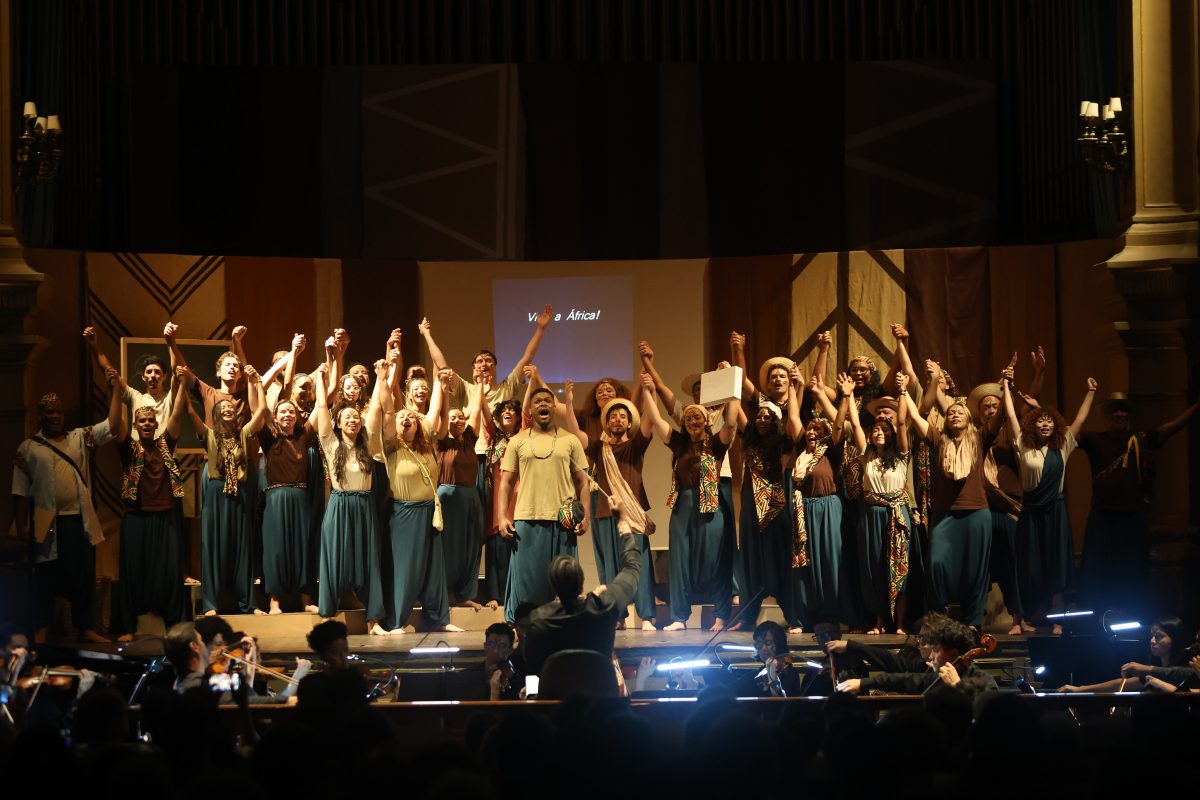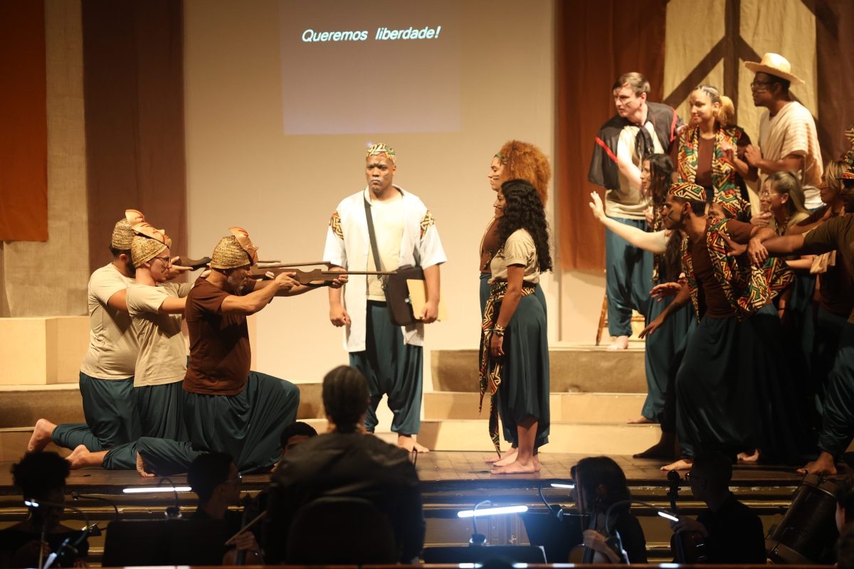 “Esta é a UFRJ, que descobre a polilaminina, que, se for comprovada, será disruptiva para as pessoas que têm lesão de medula, e que, ao mesmo tempo, faz uma ópera maravilhosa como esta, a primeira ópera moçambicana, com maestro moçambicano, aluno de doutorado da UFRJ, e que relata um tema absolutamente fantástico, como a luta pela soberania de um país e também contra o racismo”, disse o reitor.